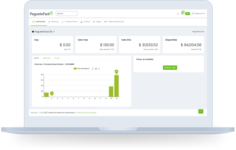 Te ofrecemos un panel administrativo o ‘Dashboard’ con las herramientas necesarias para solicitar tus cobros de manera rápida, personalizar tus solicitudes, bloquear fraudes y conocer más sobre tus clientes.